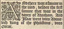 1 And there was a famine in the land, besides the first famine that was in the dayes of Abraham. And Isaac went vnto Abimelech King of the Philistims, vnto Gerar.