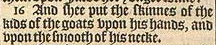 16 And shee put the skinnes of the kids of the goats vpon his hands, and vpon the smooth of his necke.