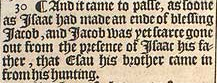 30 ¶ And it came to passe, as soone as Isaac had made an ende of blessing Iacob, and Iacob was yet scarce gone out from the presence of Isaac his father, that Esau his brother came in from his hunting.