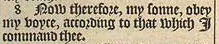 8 Now therefore, my sonne, obey my voyce, according to that which I command thee.