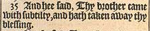 35 And hee said, Thy brother came with subtilty, and hath taken away thy blessing.