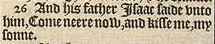 26 And his father Isaac saide vnto him, Come neere now, and kisse me, my sonne.