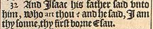 1 And it came to passe that when Isaac was old, and his eyes were dimme, so that he could not see, hee called Esau his eldest son, and said vnto him, My sonne. And hee said vnto him, Behold, here am I.