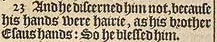 23 And he discerned him not, because his hands were hairie, as his brother Esaus hands: So he blessed him.
