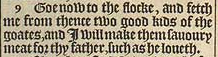 9 Goe now to the flocke, and fetch me from thence two good kids of the goates, and I will make them sauoury meat for thy father, such as he loueth.