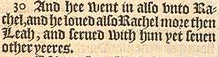 30 And hee went in also vnto Rachel, and he loued also Rachel more then Leah, and serued with him yet seuen other yeeres.