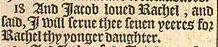 18 And Iacob loued Rachel, and said, I will serue thee seuen yeeres for Rachel thy yonger daughter.