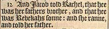 12 And Iacob told Rachel, that hee was her fathers brother, and that hee was Rebekahs sonne: and she ranne, and told her father.