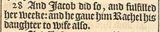 28 And Iacob did so, and fulfilled her weeke: and he gaue him Rachel his daughter to wife also.
