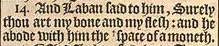 14 And Laban said to him, Surely thou art my bone and my flesh: and he abode with him the +space of a moneth. [ +Hebr. a moneth of daies. ]