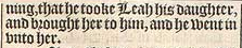 23 And it came to passe in the euening, that he tooke Leah his daughter, and brought her to him, and he went in vnto her.