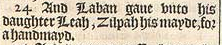 24 And Laban gaue vnto his daughter Leah, Zilpah his mayde, for a handmayd.