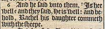6 And he said vnto them, + Is hee well? and they said, He is well: and behold, Rachel his daughter commeth with the sheepe. [+ Hebr. Is there peace to him? ]