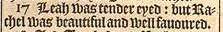 17 Leah was tender eyed: but Rachel was beautiful and well fauoured.