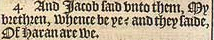 4 And Iacob said vnto them, My brethren, whence be ye? and they saide, Of Haran are we.
