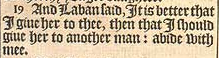 19 And Laban said, It is better that I giue her to thee, then that I should giue her to another man: abide with mee.