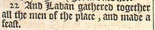 22 And Laban gathered together all the men of the place, and made a feast.
