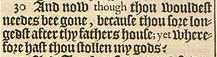 30 And now though thou wouldest needes bee gone, because thou sore longedst after thy fathers house; yet wherefore hast thou stollen my gods?
