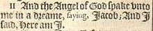 11 Und der Engel Gottes sprach zu mir in einem Traum und sagte ‘Jakob'; und ich sagte 'Hier bin ich’.