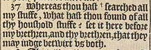 37 Whereas thou hast +searched all my stuffe, what hast thou found of all thy houshold stuffe? set it here before my brethren, and thy brethren, that they may iudge betwixt vs both. [ +Hebr. felt. ]