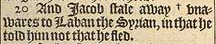 20 And Iacob stale away +vnawares to Laban the Syrian, in that he told him not that he fled. [ +Hebr. the heart of Laban. ]