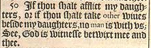 50 If thou shalt afflict my daughters, or if thou shalt take other wiues beside my daughters, no man is with vs; See, God is witnesse betwixt mee and thee.