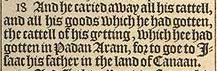 18 And he caried away all his cattell, and all his goods which he had gotten, the cattell of his getting, which hee had gotten in Padan Aram, for to goe to Isaac his father in the land of Canaan.