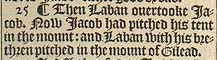 25 ¶ Then Laban ouertooke Iacob. Now Iacob had pitched his tent in the mount: and Laban with his brethren pitched in the mount of Gilead.