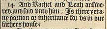 14 And Rachel and Leah answered, and said vnto him; Is there yet any portion or inheritance for vs in our fathers house?
