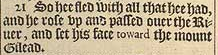 21 So hee fled with all that hee had, and he rose vp and passed ouer the Riuer, and set his face toward the mount Gilead.