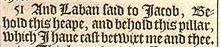 51 And Laban said to Iacob, Behold this heape, and behold this pillar, which I haue cast betwixt me and thee.