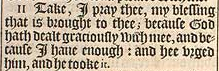 11 Take, I pray thee, my blessing that is brought to thee; because God hath dealt graciously with mee, and because I haue enough: and hee vrged him, and he tooke it.