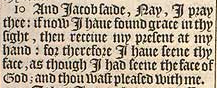 10 And Iacob saide, Nay, I pray thee: if now I haue found grace in thy sight, then receiue my present at my hand: for therefore I haue seene thy face, as though I had seene the face of God; and thou wast pleased with me.