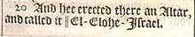 20 And hee erected there an Altar, and called it || El-Elohe-Israel. [ || That is, God, the God of Israel. ]