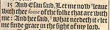15 And Esau said, Let me now +leaue with thee some of the folke that are with me: And hee said, +What needeth it? let me finde grace in the sight of my lord. [ +Heb. Set, or place. , + Heb. wherfore is this? ]