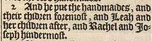 2 And he put the handmaides, and their chidren foremost, and Leah and her children after, and Rachel and Ioseph hindermost.