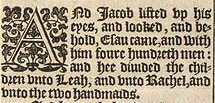 1 And Iacob lifted vp his eyes, and looked, and behold, Esau came, and with him foure hundreth men: and hee diuided the children vnto Leah, and vnto Rachel, and vnto the two handmaids.