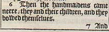 6 Then the handmaidens came neere; they and their children, and they bowed themselues.