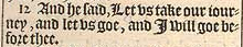 12 And he said, Let vs take our iourney, and let vs goe, and I will goe before thee.