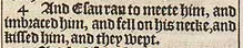 4 And Esau ran to meete him, and imbraced him, and fell on his necke, and kissed him, and they wept.