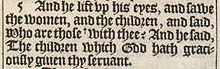 5 And he lift vp his eyes, and sawe the women, and the children, and said, who are those +with thee? And he said, The children which God hath graciously giuen thy seruant. [ + Heb. To thee. ]