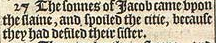 27 The sonnes of Iacob came vpon the slaine, and spoiled the citie, because they had defiled their sister.