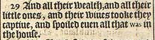 29 And all their wealth, and all their little ones, and their wiues tooke they captiue, and spoiled euen all that was in the house.