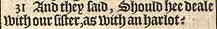 31 And they said, Should hee deale with our sister, as with an harlot?