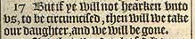 17 But if ye will not hearken vnto vs, to be circumcised, then will we take our daughter, and we will be gone.