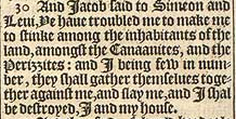 30 And Iacob said to Simeon and Leui, Ye haue troubled me to make me to stinke among the inhabitants of the land, amongst the Canaanites, and the Perizzites: and I being few in number, they shall gather themselues together against me, and slay me, and I shal be destroyed, I and my house.