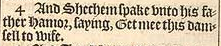 4 Und Sichem sprach zu seinem Vater Hemor und sagte “Hole mir dieses Mädchen zur Frau.”