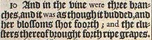 10 And in the vine were three branches, and it was as though it budded, and her blossoms shot foorth; and the clusters thereof brought forth ripe grapes.