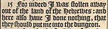 15 For indeed I was stollen away out of the land of the Hebrewes: and here also haue I done nothing, that they should put me into the dungeon.