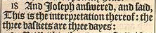 18 And Ioseph answered, and said, This is the interpretation thereof: the three baskets are three dayes: